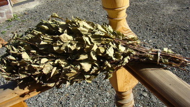 Любителей парных бань обрадует большое разнообразие вязаных веников. Стоит лишь затопить дровяную печь, обмахнуть веник в горячей воде, и баню наполнит свежий аромат березовых листьев. А после позвать всех гостей за стол и поднять бокал за встречу!